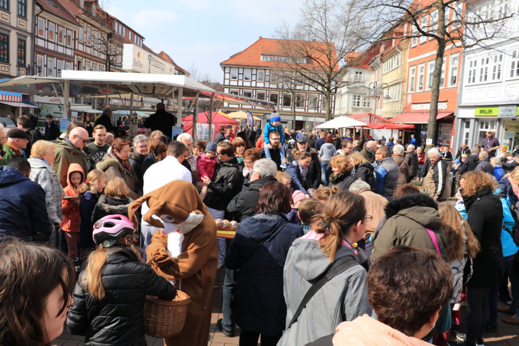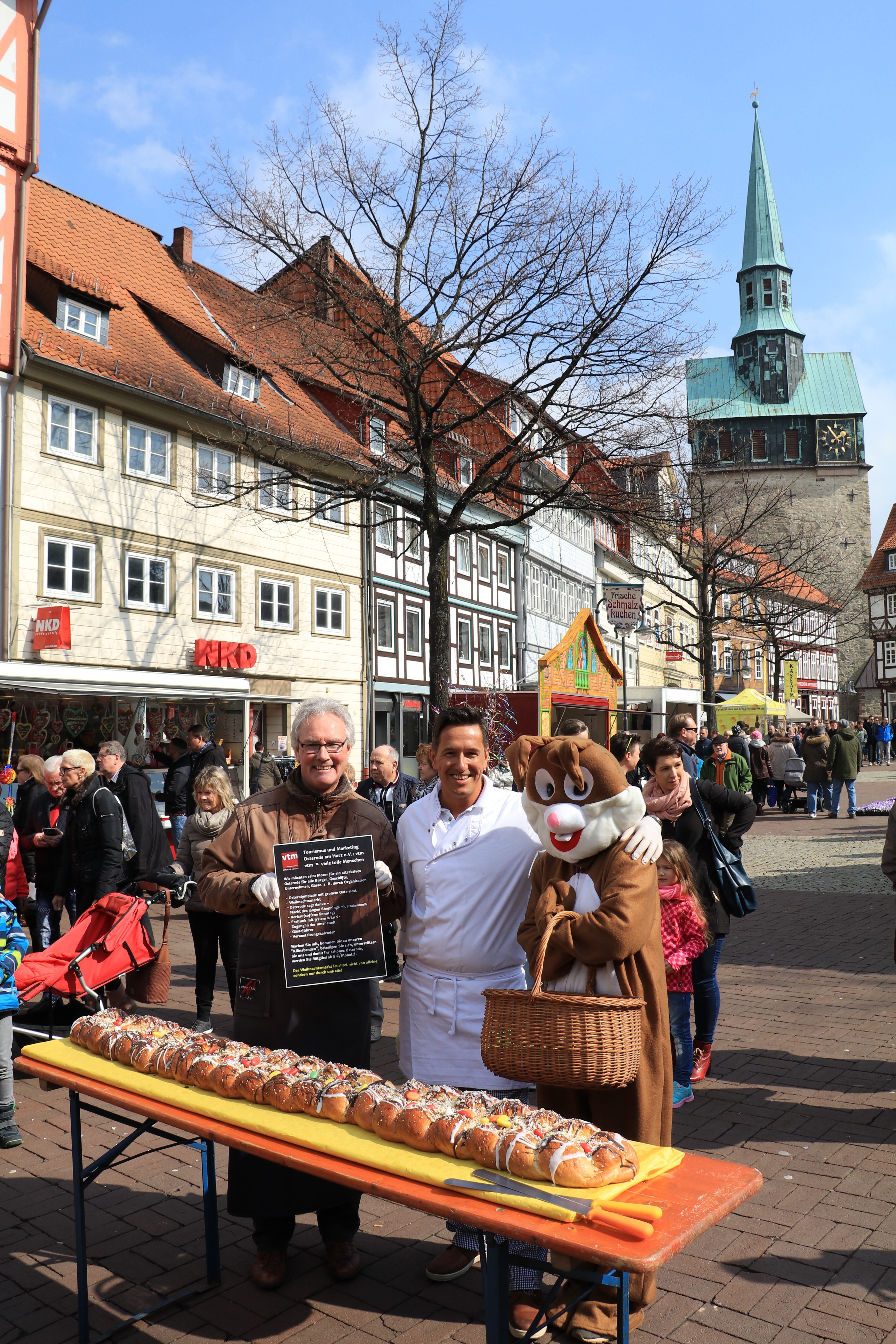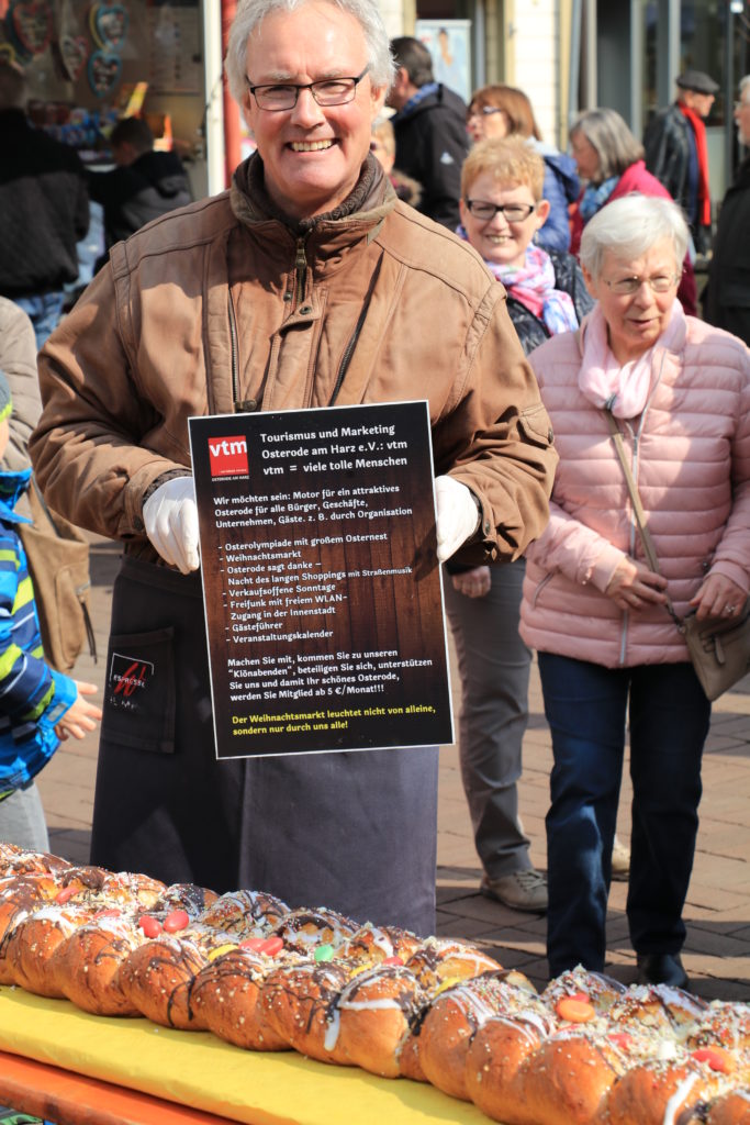 Bereits ab Mittag füllte sich die Stadt. Bei Sonnenschein und vorfrühlingshaften Temperaturen konnten die Besucher ausgiebig über den Ostermarkt auf dem Kornmarkt bummeln oder in den Geschäften einkaufen. Um 14.00 Uhr wurde der Osterzopf vom Konditormeister Jörg Dornemann angeschnitten und verteilt. Die Kaufmannschaft der Innenstadt war mit dem Zuspruch sehr zufrieden, obwohl nicht nur Osterode zum verkaufsoffenen Sonntag eingeladen hatte. Auch die Besucher waren sehr angetan vom Angebot und den vielen Ständen und natürlich vom Osternest, dass gerne als Fotomotiv genutzt wurde. So macht es Spaß in die Innenstadt zu gehen, war es Resümee von vielen Besuchern.