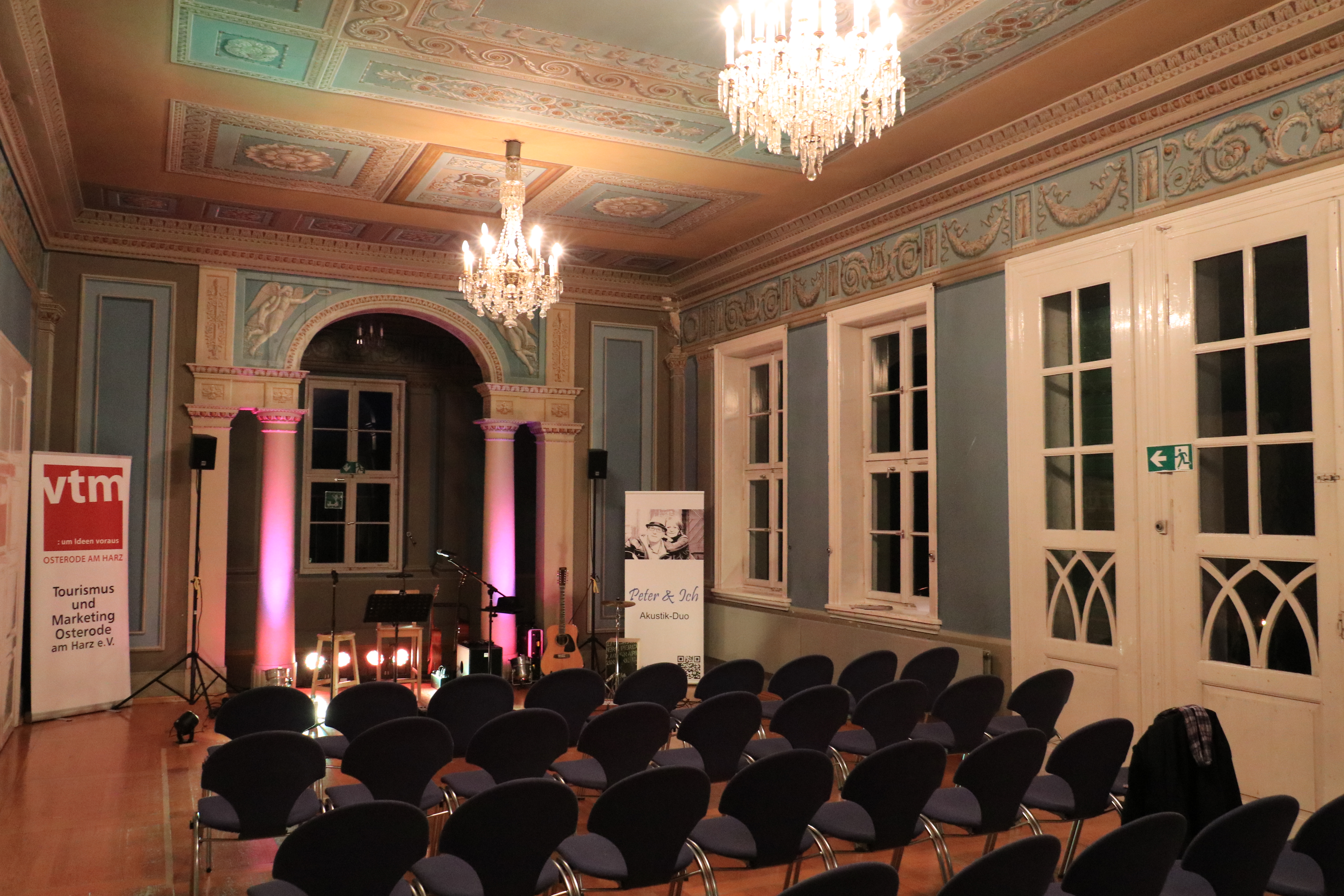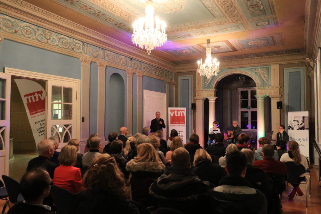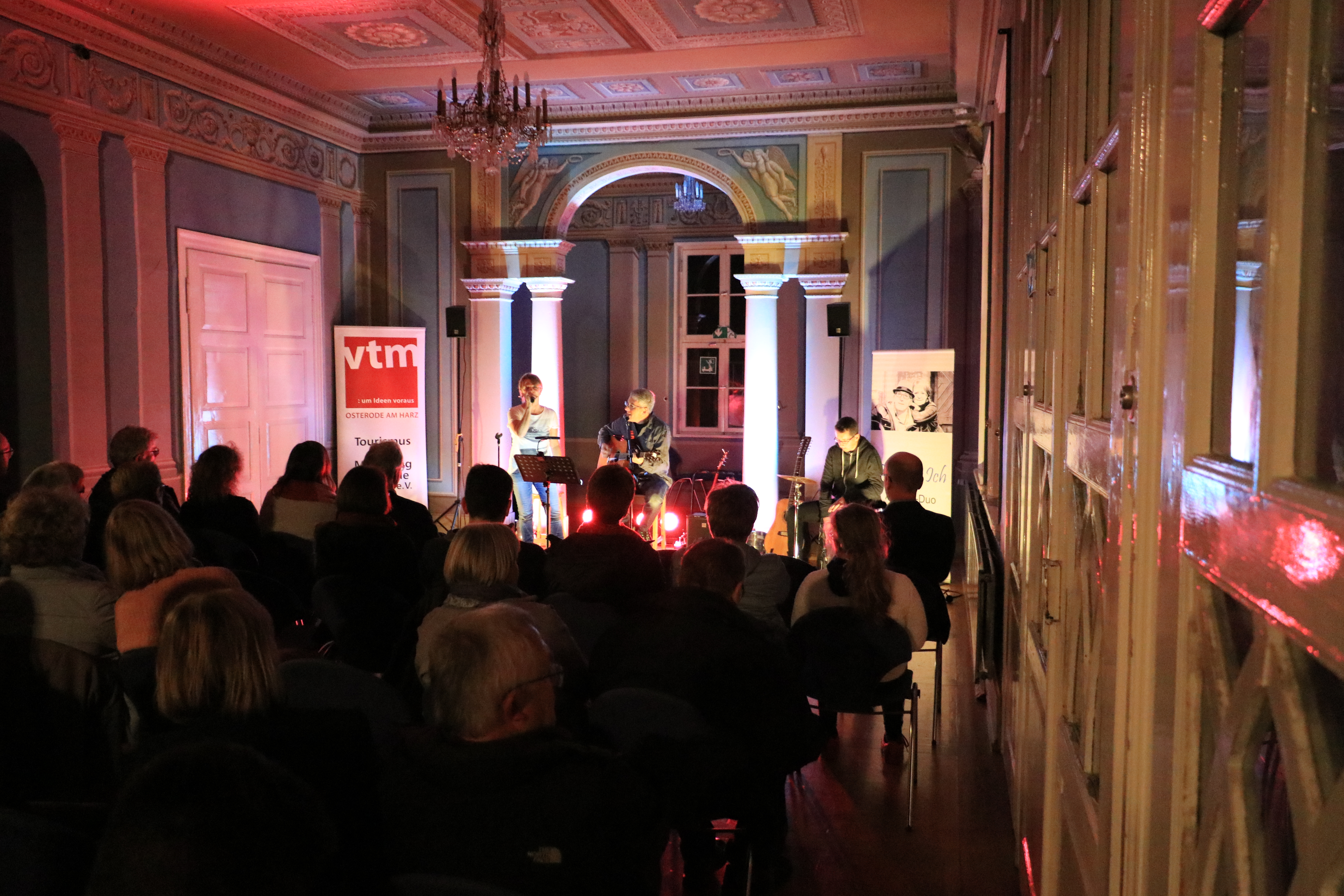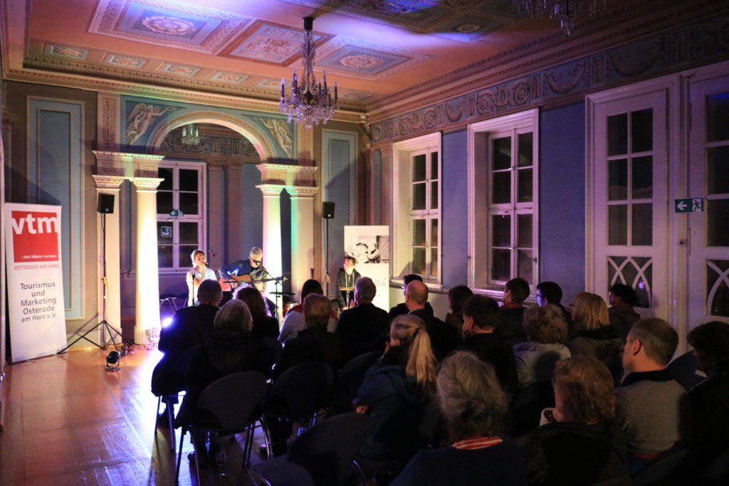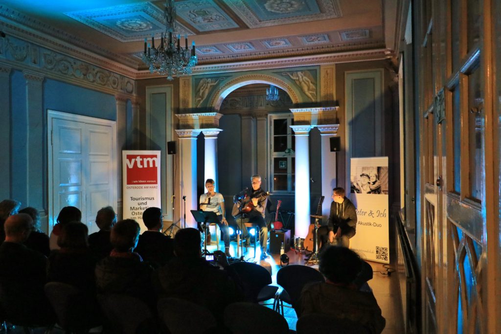 Im Rahmen des DenkmalKunst/KunstDenkmal-Festivals der Fachwerk 5-Eck-Städte hat sich der vtm als Sponsor engagiert. Am 7. Oktober 2017 hat das Konzert der Gruppe Peter & Ich aus Northeim (www.peterundich.de) im blauen Saal der Schachtrupp-Villa stattgefunden. Mit rund 50 Gäste war der Saal gut gefüllt und die Besucher waren von der Musik und der Akustik des Saales sehr angetan. In der Pause hatten wir Getränke angeboten und die weiteren Ausstellungsräume konnten besichtigt werden. Nachstehend einige Eindrücke vom Abend.