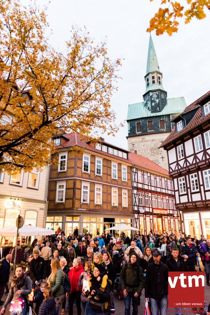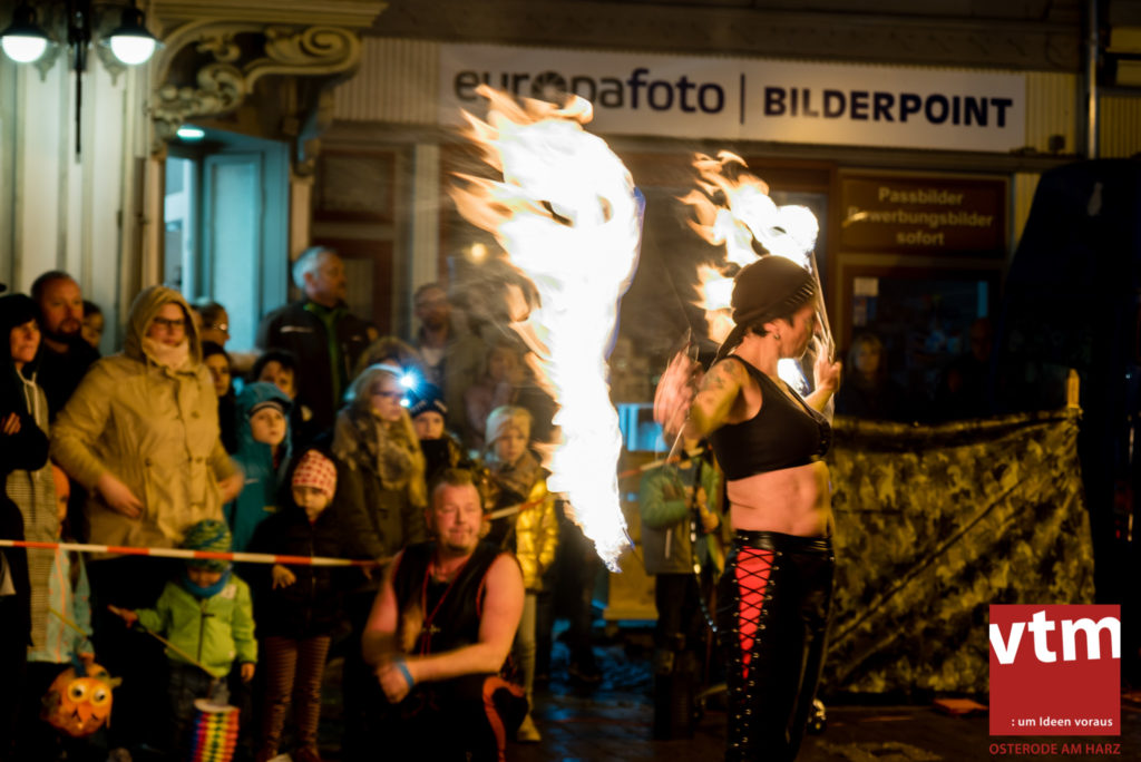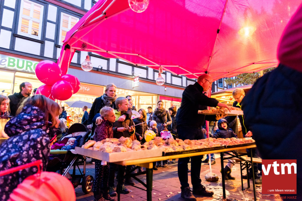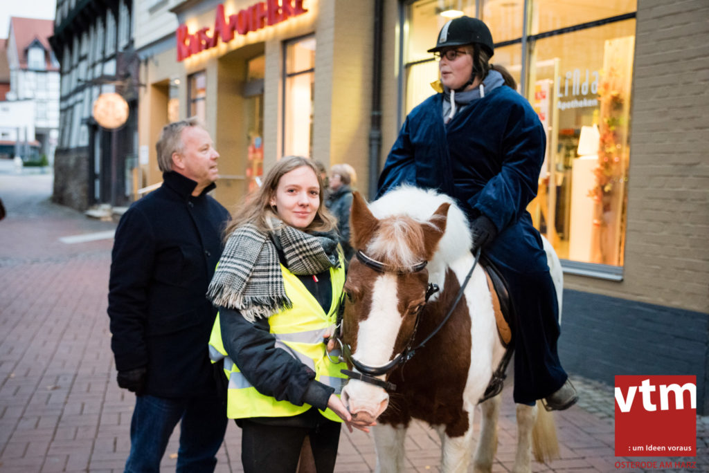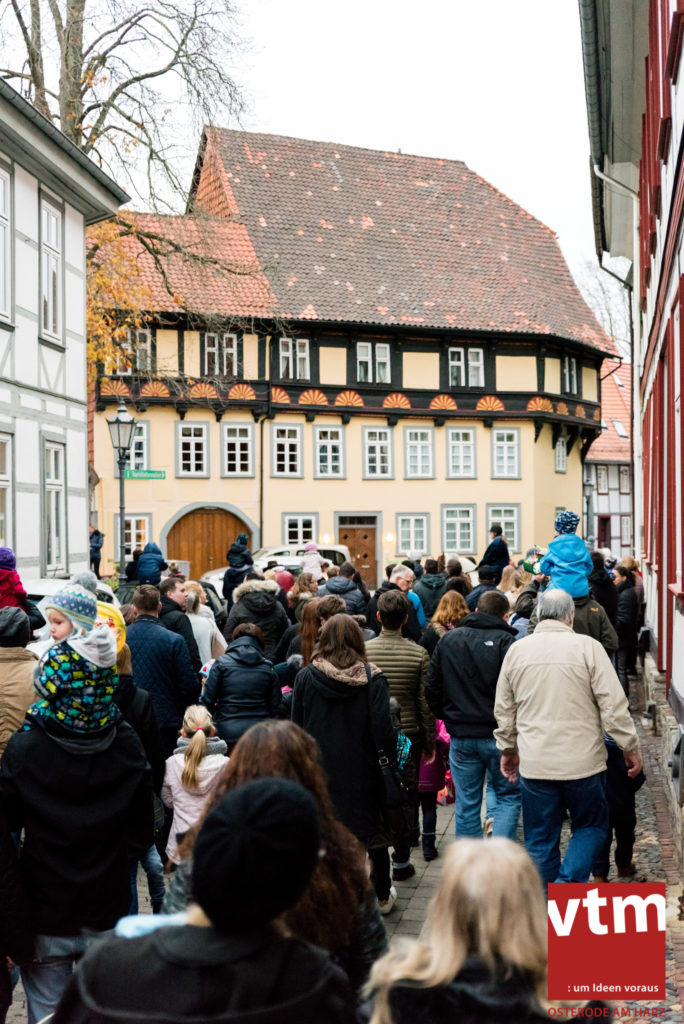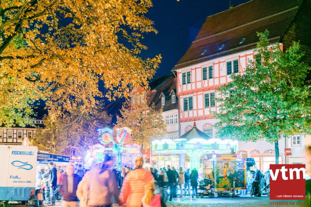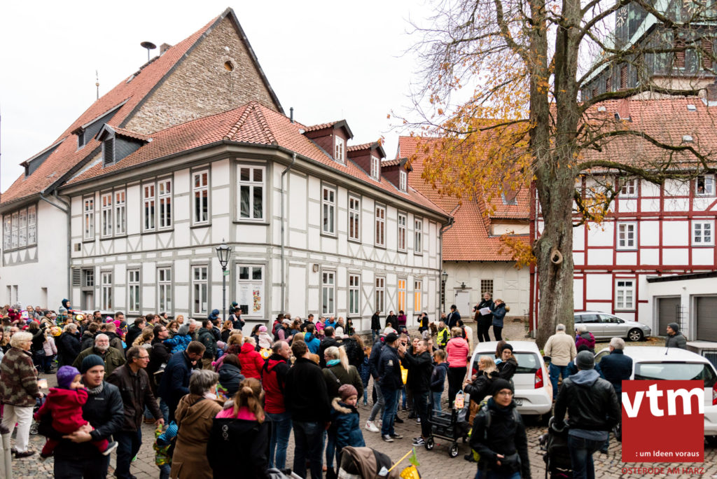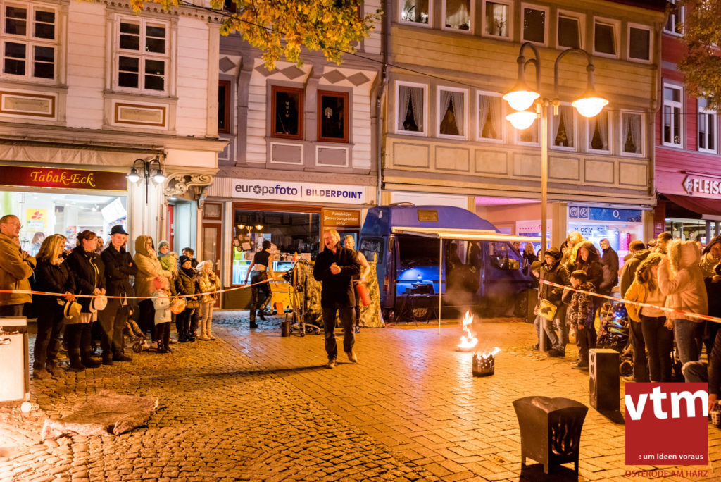 Voll, voller, am vollsten war die Osteroder Innenstadt am vergangenen Sonntag. Wir sind noch immer überwältigt davon, wie viele Besucher das Osteroder Lichterfest auf den Kornmarkt und drum herum gelockt hat. Jung und Alt bummelten im Schein der zahlreichen Lichter, stärkten sich mit den angebotenen Köstlichkeiten oder ließen sich von unserem Bürgermeister am vtm-Stand Glühwein einschenken. Strahlende Kinderaugen sah man im Kinderkarussell und Mini-Riesenrad sowie beim Kinderschminken von Optik Berneburg oder beim Laternebasteln im Spielzeugladen. Fast 100 Laternen sind am Sonntagnachmittag dort entstanden und fanden später ihren Einsatz beim Martinsumzug. Begleitet von Musiker Martin Hampe startete der Umzug um 16:30 Uhr auf dem Martin-Luther-Platz, auf dem man vor Kinderscharen und wunderschön leuchtenden Laternen kaum noch ein Bein auf den Boden bekam. Hoch zu Ross führte die Tochter des Bürgermeisters die bunte Laternen-Runde durch die Innenstadt bis zur Marientorstraße, wo die Kinder ein Heißgetränk sowie gesponserte Martinswecken vom Café Dornemann als Stärkung bekamen. Highlight des Tages und Abschluss einer gelungenen Veranstaltung bildete eine tolle Feuershow mit Musik auf dem Kornmarkt. Wir freuen uns über die durchweg positive Resonanz der Bürger, Osteroder Geschäftsleute und Budenbetreiber. Wir,als Veranstalter, waren ebenfalls mehr als zufrieden. Ein besonderer Dank gilt dem Café Dornemann, Optik Berneburg sowie Frau Kruse vom Spielzeugladen, Frau Lücke vom Findling und Frau Anke Pflaumbaum, Mutter von Maik Pflaumbaum/Telekomshop Marientorstraße, für die Unterstützung.