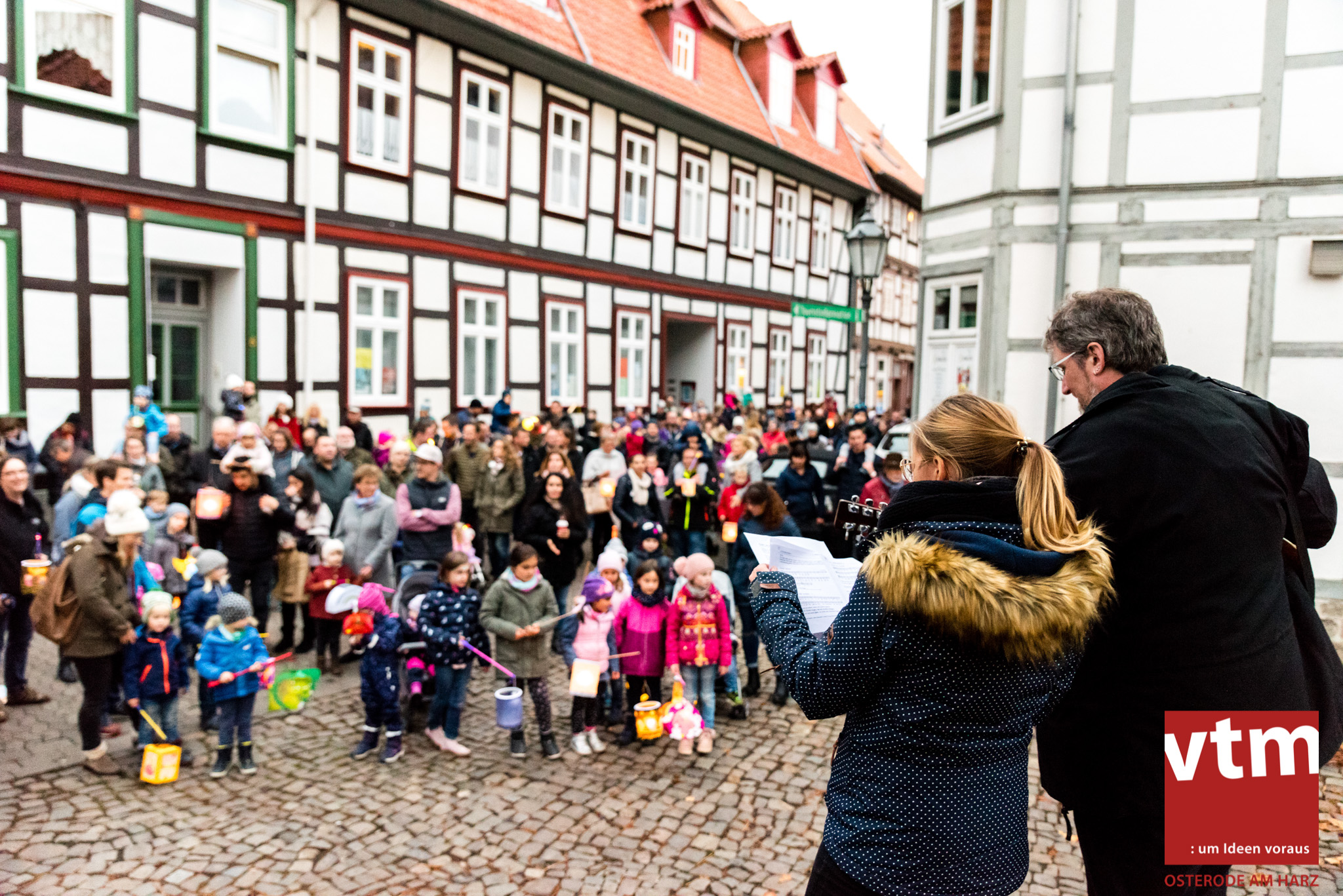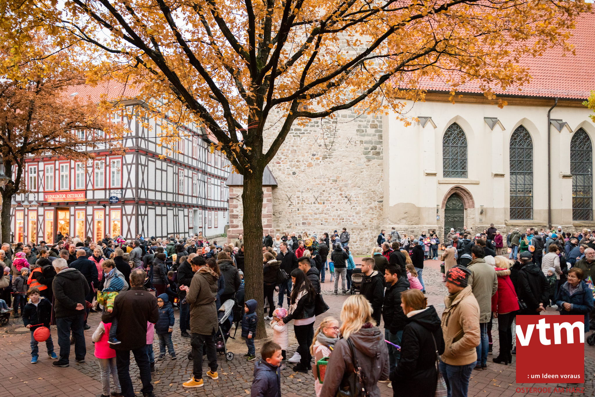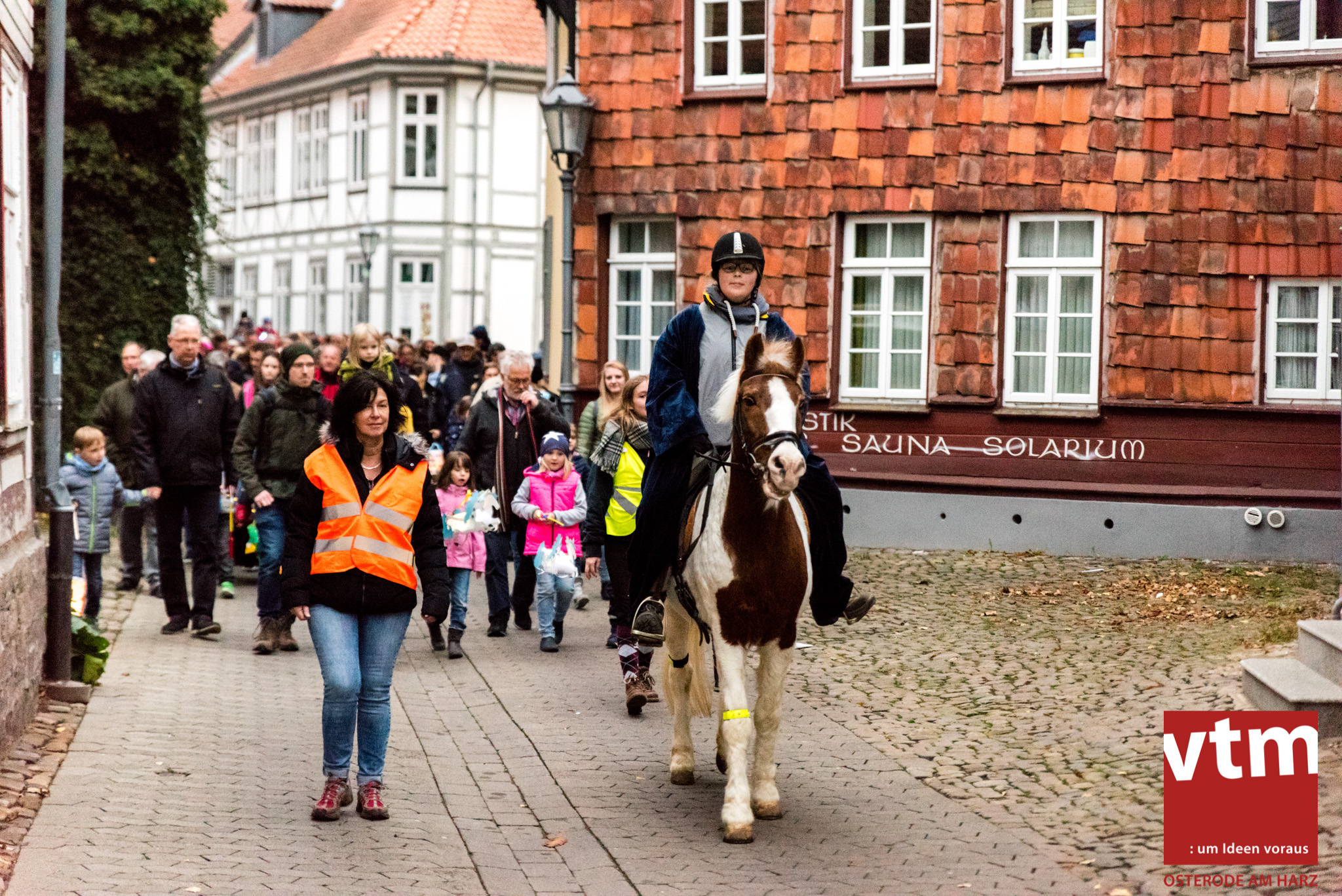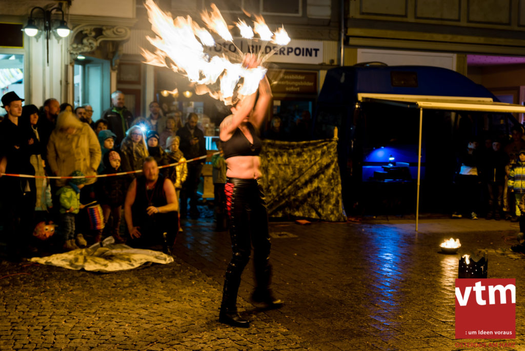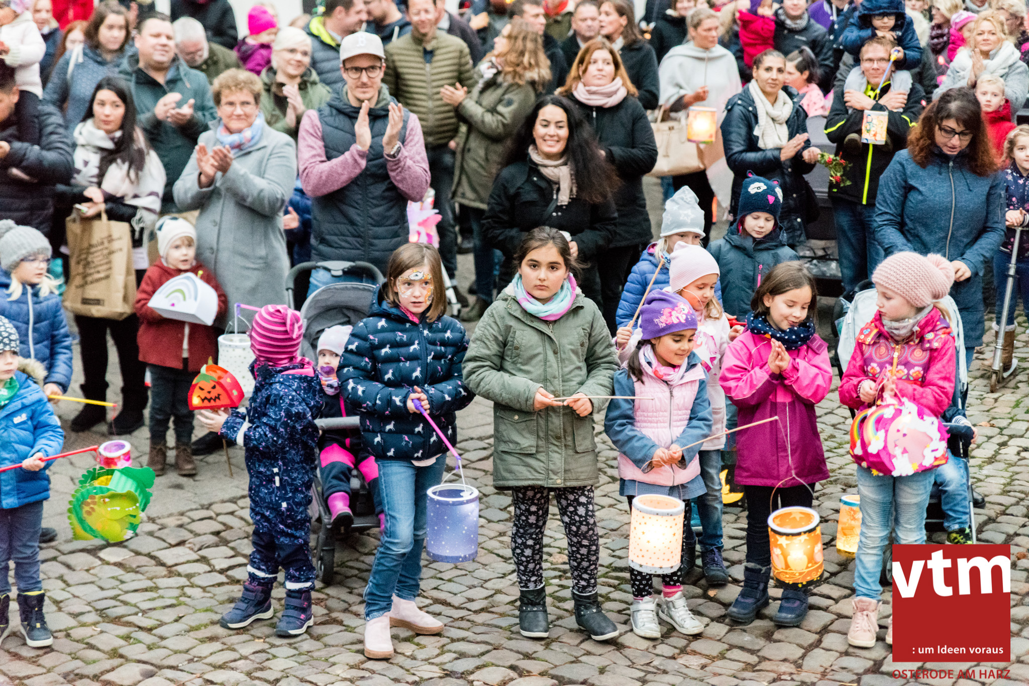 Voll, voller, am vollsten war die Osteroder Innenstadt am vergangenen Sonntag. Wir sind noch immer überwältigt davon, wie viele Besucher das Osteroder Lichterfest auf den Kornmarkt und drum herum gelockt hat. Jung und Alt bummelten im Schein der zahlreichen Lichter, stärkten sich mit den angebotenen Köstlichkeiten oder ließen sich von unserem Bürgermeister am vtm-Stand Glühwein einschenken. Strahlende Kinderaugen sah man im Kinderkarussell und Mini-Riesenrad sowie beim Kinderschminken von Optik Berneburg oder beim Laternebasteln im Spielzeugladen. Fast 100 Laternen sind am Sonntagnachmittag dort entstanden und fanden später ihren Einsatz beim Martinsumzug. Begleitet von Musiker Martin Hampe startete der Umzug um 16:30 Uhr auf dem Martin-Luther-Platz, auf dem man vor Kinderscharen und wunderschön leuchtenden Laternen kaum noch ein Bein auf den Boden bekam. Hoch zu Ross führte die Tochter des Bürgermeisters die bunte Laternen-Runde durch die Innenstadt bis zur Marientorstraße, wo die Kinder ein Heißgetränk sowie gesponserte Martinswecken vom Café Dornemann als Stärkung bekamen. Highlight des Tages und Abschluss einer gelungenen Veranstaltung bildete eine tolle Feuershow mit Musik auf dem Kornmarkt. Wir freuen uns über die durchweg positive Resonanz der Bürger, Osteroder Geschäftsleute und Budenbetreiber. Wir,als Veranstalter, waren ebenfalls mehr als zufrieden. Ein besonderer Dank gilt dem Café Dornemann, Optik Berneburg sowie Frau Kruse vom Spielzeugladen, Frau Lücke vom Findling und Frau Anke Pflaumbaum, Mutter von Maik Pflaumbaum/Telekomshop Marientorstraße, für die Unterstützung.