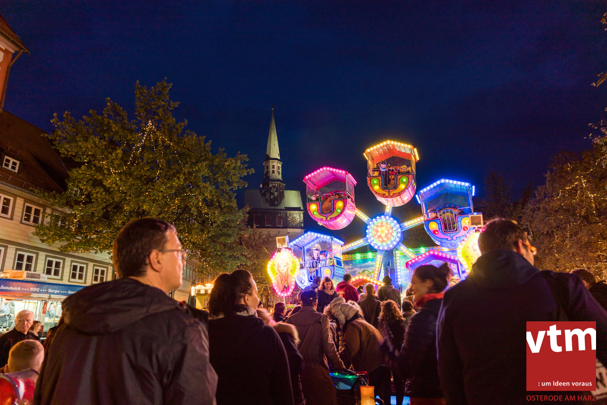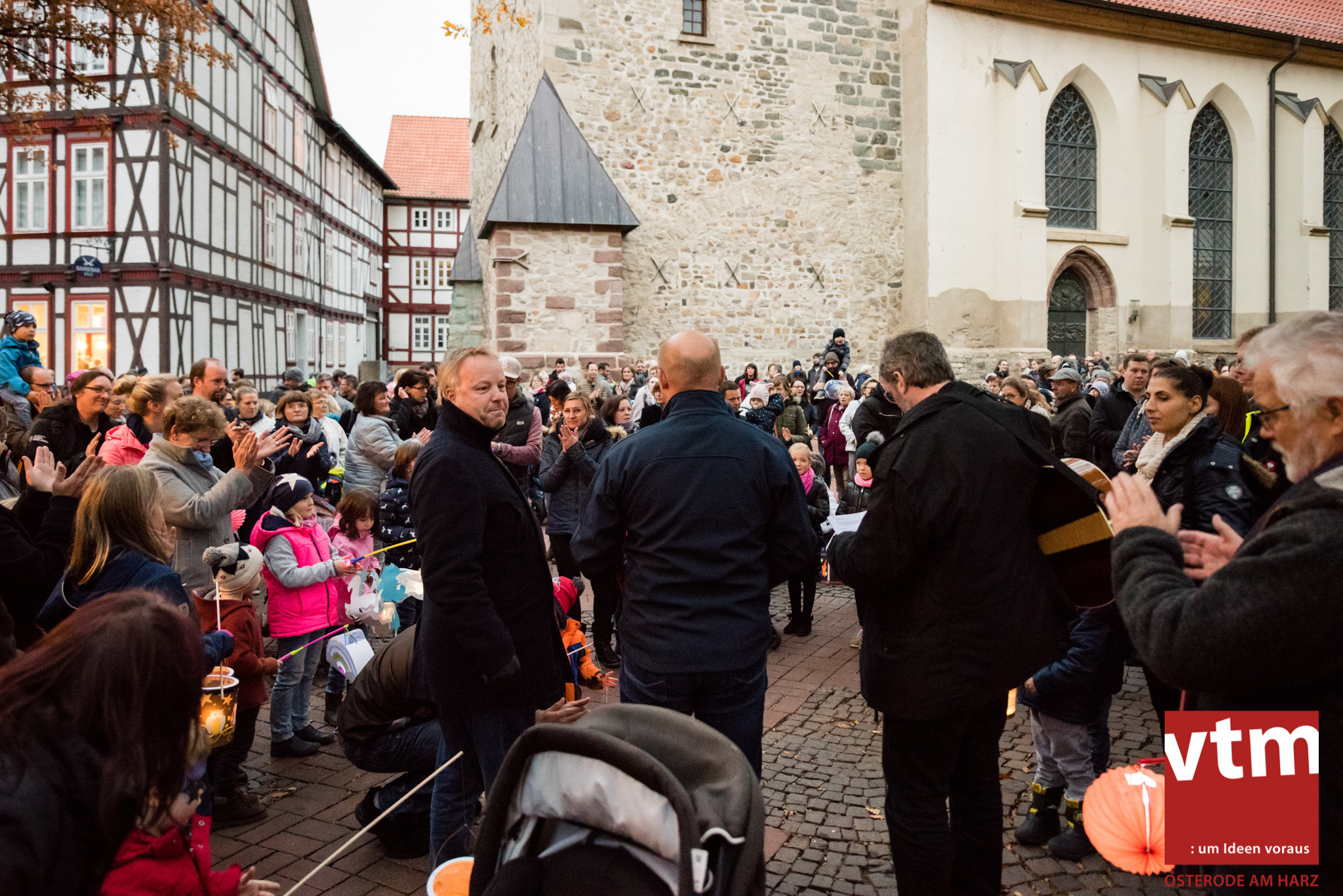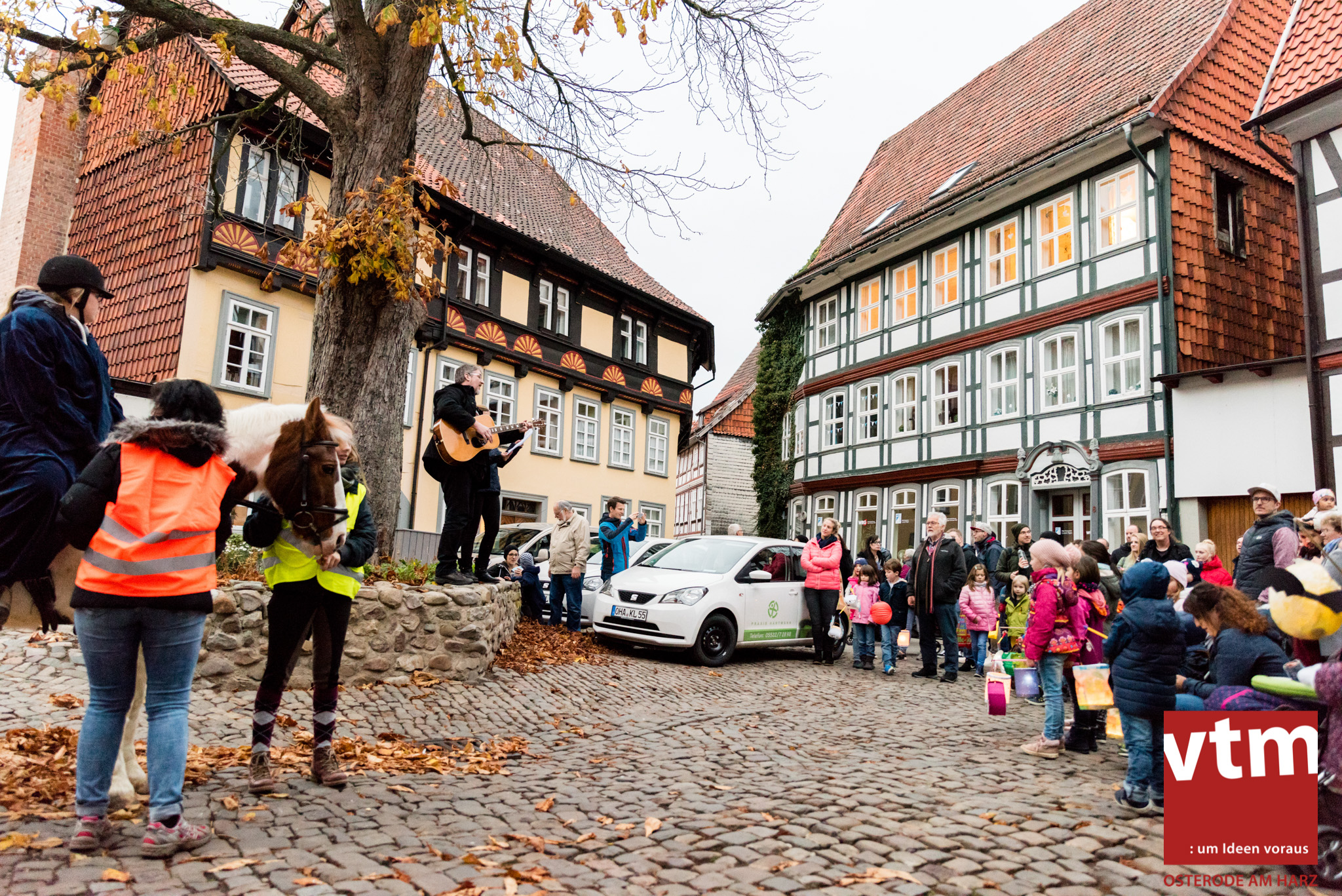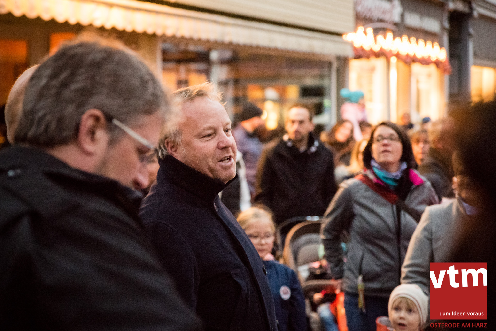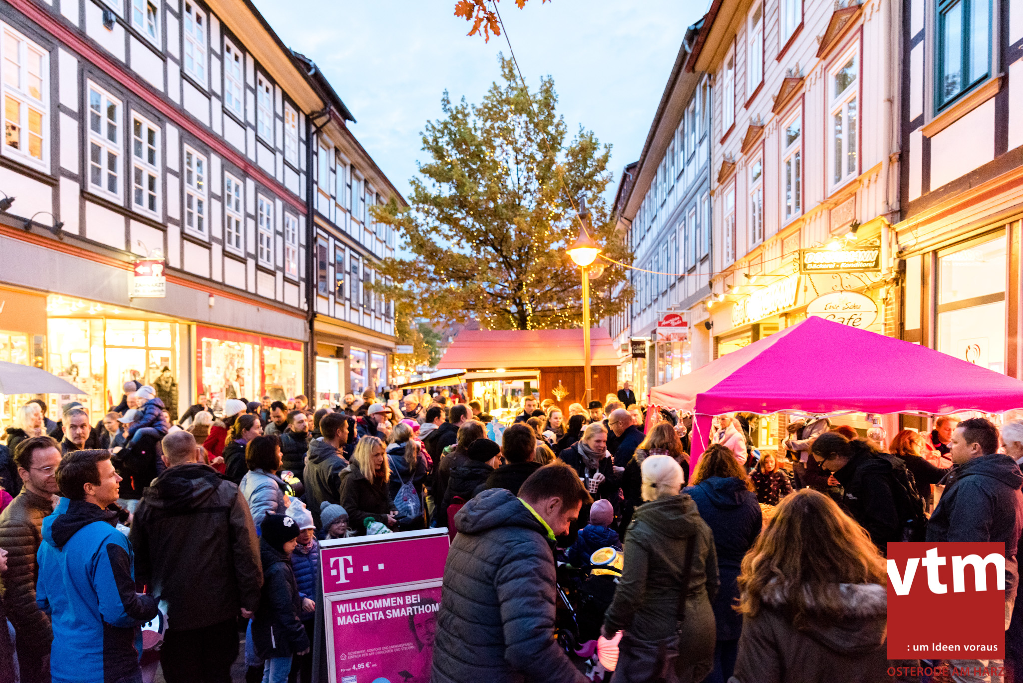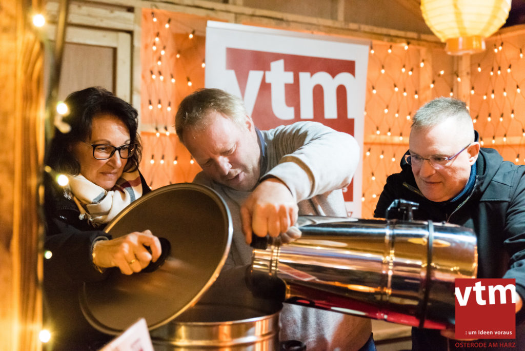 Voll, voller, am vollsten war die Osteroder Innenstadt am vergangenen Sonntag. Wir sind noch immer überwältigt davon, wie viele Besucher das Osteroder Lichterfest auf den Kornmarkt und drum herum gelockt hat. Jung und Alt bummelten im Schein der zahlreichen Lichter, stärkten sich mit den angebotenen Köstlichkeiten oder ließen sich von unserem Bürgermeister am vtm-Stand Glühwein einschenken. Strahlende Kinderaugen sah man im Kinderkarussell und Mini-Riesenrad sowie beim Kinderschminken von Optik Berneburg oder beim Laternebasteln im Spielzeugladen. Fast 100 Laternen sind am Sonntagnachmittag dort entstanden und fanden später ihren Einsatz beim Martinsumzug. Begleitet von Musiker Martin Hampe startete der Umzug um 16:30 Uhr auf dem Martin-Luther-Platz, auf dem man vor Kinderscharen und wunderschön leuchtenden Laternen kaum noch ein Bein auf den Boden bekam. Hoch zu Ross führte die Tochter des Bürgermeisters die bunte Laternen-Runde durch die Innenstadt bis zur Marientorstraße, wo die Kinder ein Heißgetränk sowie gesponserte Martinswecken vom Café Dornemann als Stärkung bekamen. Highlight des Tages und Abschluss einer gelungenen Veranstaltung bildete eine tolle Feuershow mit Musik auf dem Kornmarkt. Wir freuen uns über die durchweg positive Resonanz der Bürger, Osteroder Geschäftsleute und Budenbetreiber. Wir,als Veranstalter, waren ebenfalls mehr als zufrieden. Ein besonderer Dank gilt dem Café Dornemann, Optik Berneburg sowie Frau Kruse vom Spielzeugladen, Frau Lücke vom Findling und Frau Anke Pflaumbaum, Mutter von Maik Pflaumbaum/Telekomshop Marientorstraße, für die Unterstützung.