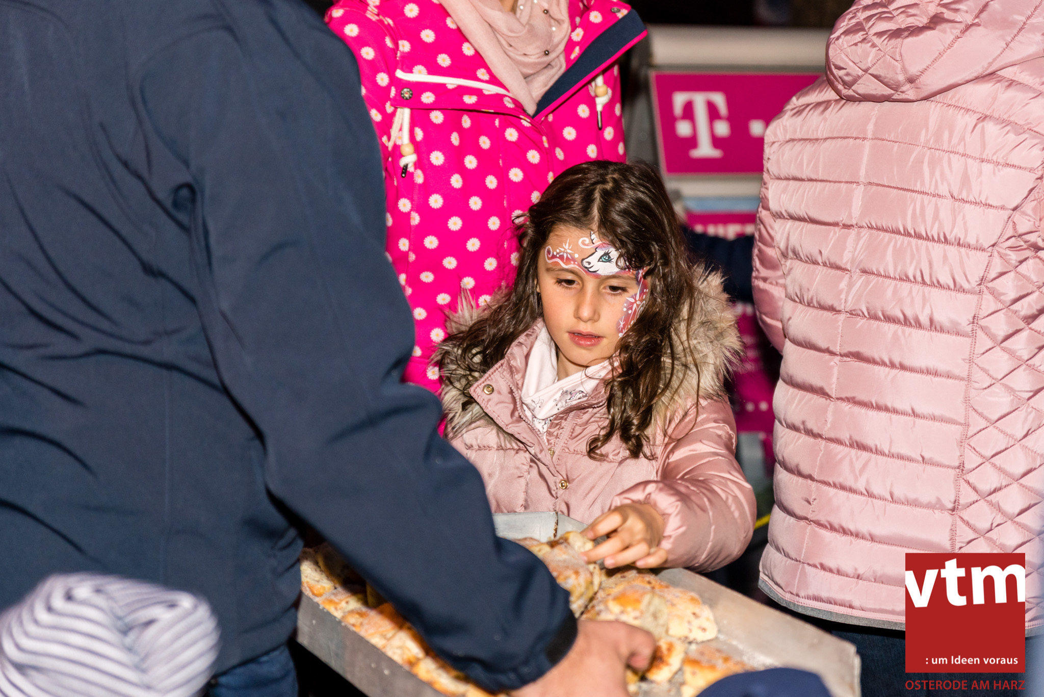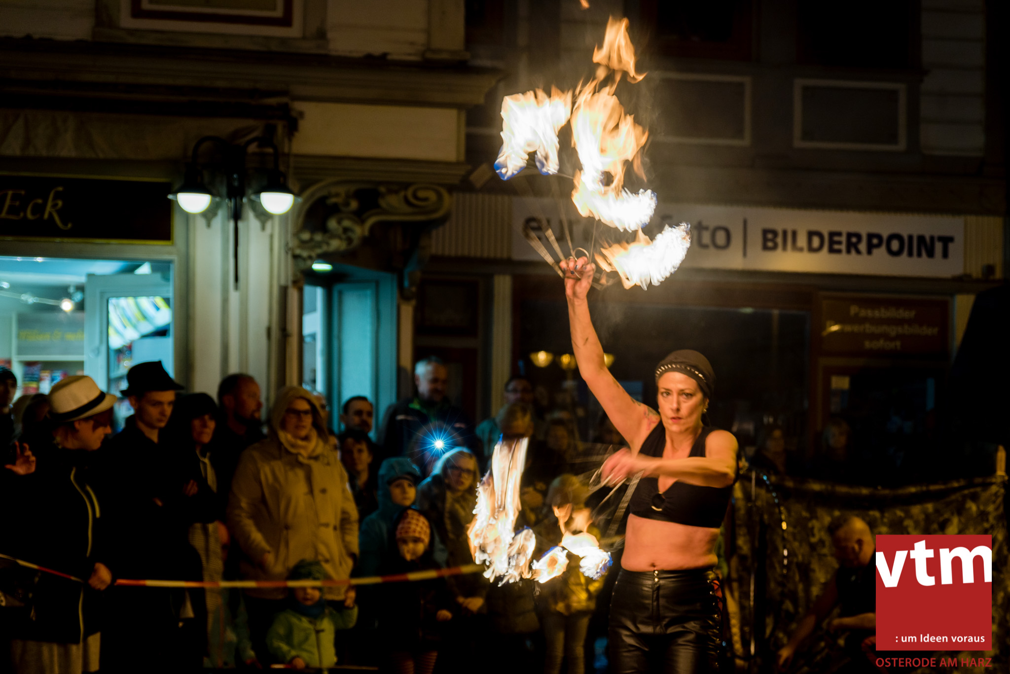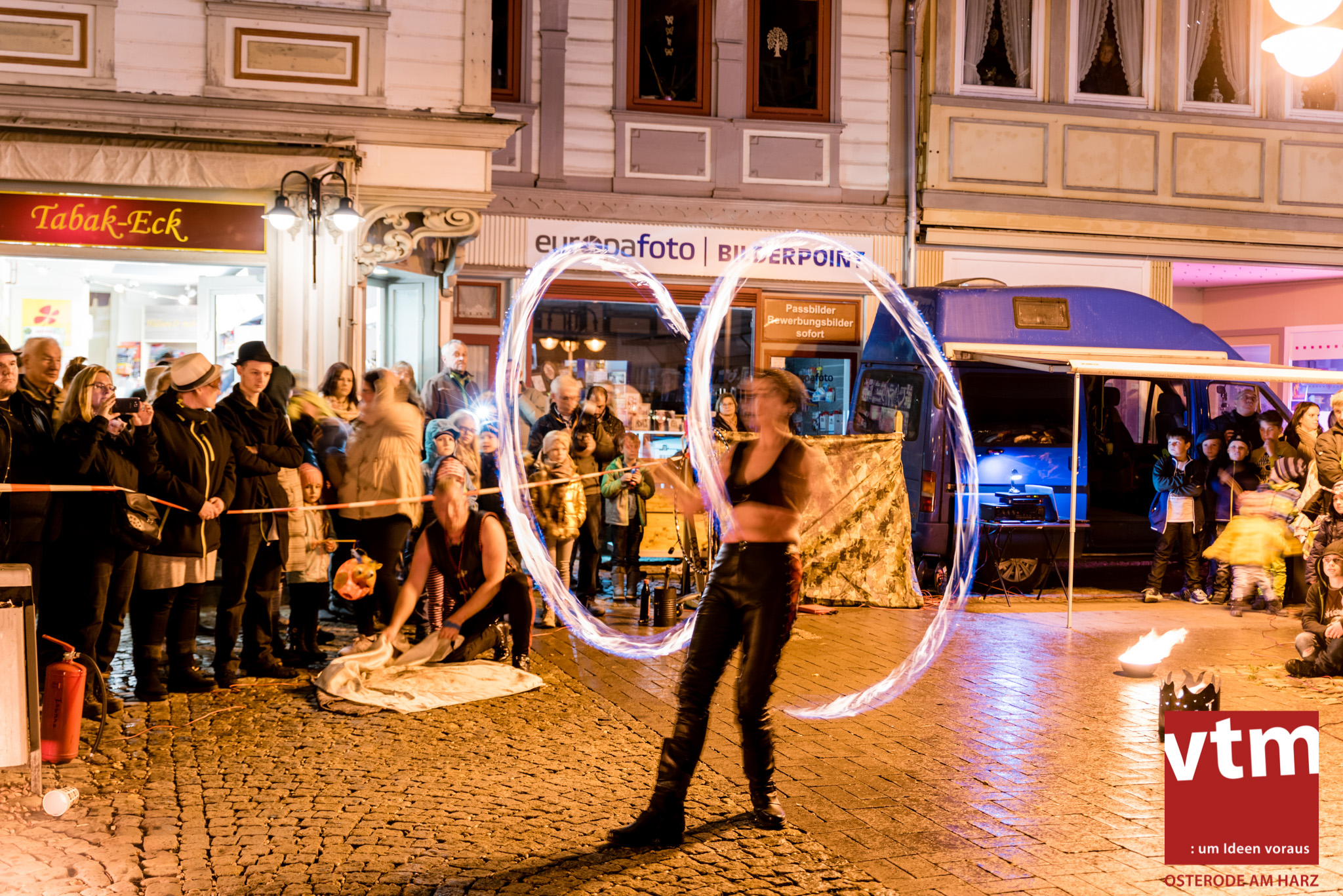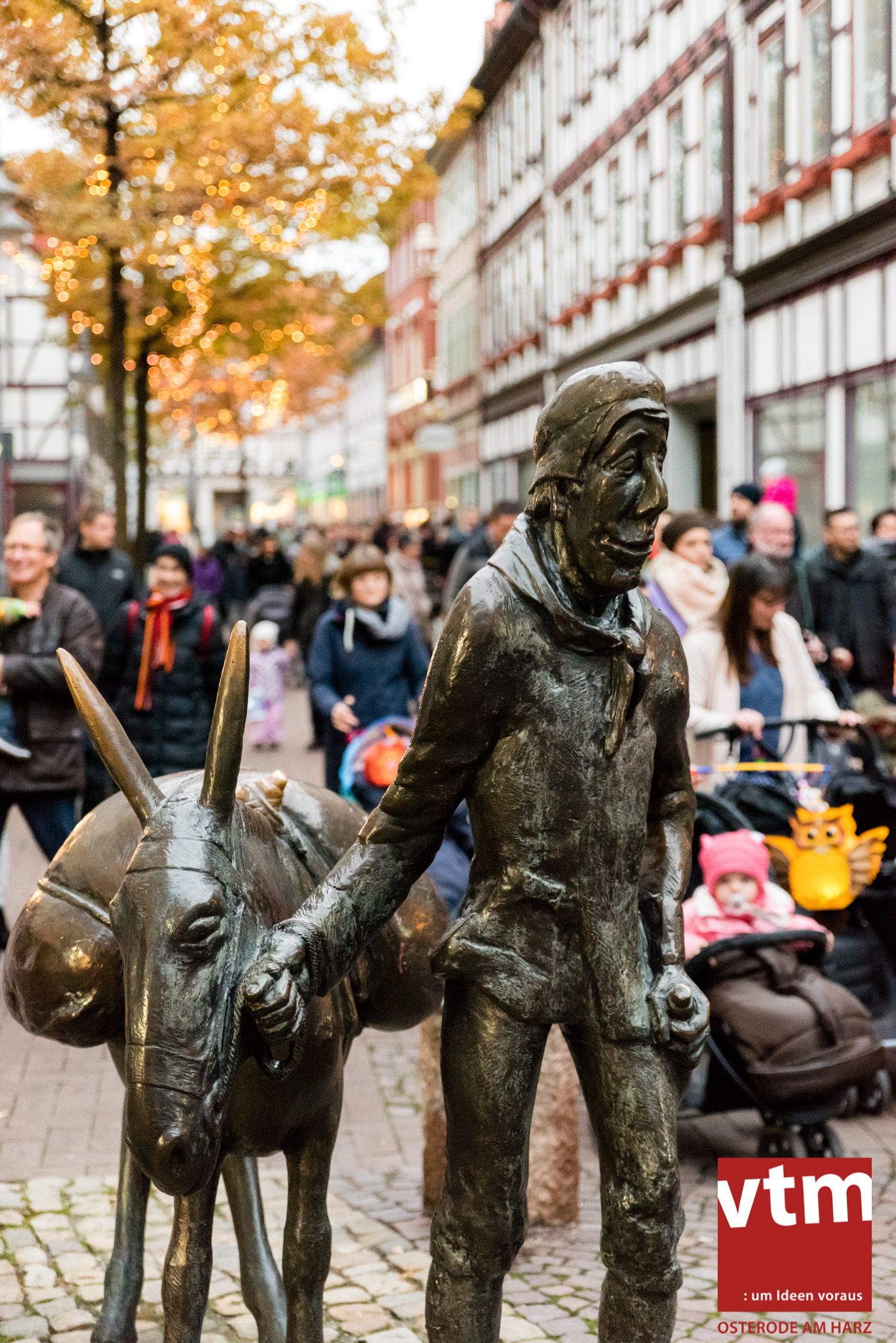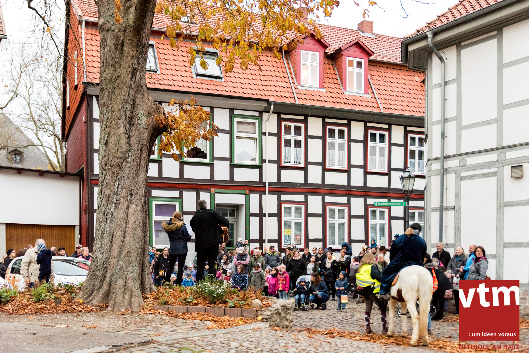 Voll, voller, am vollsten war die Osteroder Innenstadt am vergangenen Sonntag. Wir sind noch immer überwältigt davon, wie viele Besucher das Osteroder Lichterfest auf den Kornmarkt und drum herum gelockt hat. Jung und Alt bummelten im Schein der zahlreichen Lichter, stärkten sich mit den angebotenen Köstlichkeiten oder ließen sich von unserem Bürgermeister am vtm-Stand Glühwein einschenken. Strahlende Kinderaugen sah man im Kinderkarussell und Mini-Riesenrad sowie beim Kinderschminken von Optik Berneburg oder beim Laternebasteln im Spielzeugladen. Fast 100 Laternen sind am Sonntagnachmittag dort entstanden und fanden später ihren Einsatz beim Martinsumzug. Begleitet von Musiker Martin Hampe startete der Umzug um 16:30 Uhr auf dem Martin-Luther-Platz, auf dem man vor Kinderscharen und wunderschön leuchtenden Laternen kaum noch ein Bein auf den Boden bekam. Hoch zu Ross führte die Tochter des Bürgermeisters die bunte Laternen-Runde durch die Innenstadt bis zur Marientorstraße, wo die Kinder ein Heißgetränk sowie gesponserte Martinswecken vom Café Dornemann als Stärkung bekamen. Highlight des Tages und Abschluss einer gelungenen Veranstaltung bildete eine tolle Feuershow mit Musik auf dem Kornmarkt. Wir freuen uns über die durchweg positive Resonanz der Bürger, Osteroder Geschäftsleute und Budenbetreiber. Wir,als Veranstalter, waren ebenfalls mehr als zufrieden. Ein besonderer Dank gilt dem Café Dornemann, Optik Berneburg sowie Frau Kruse vom Spielzeugladen, Frau Lücke vom Findling und Frau Anke Pflaumbaum, Mutter von Maik Pflaumbaum/Telekomshop Marientorstraße, für die Unterstützung.