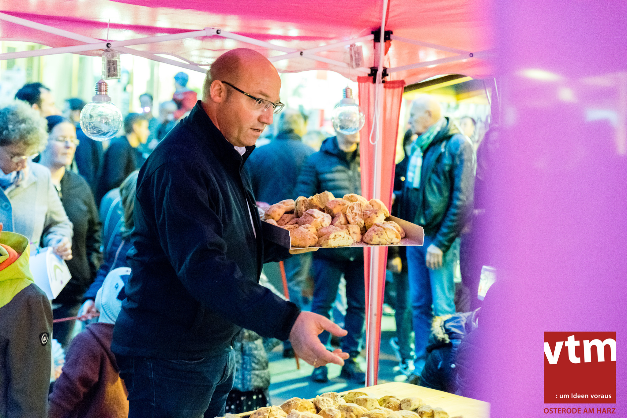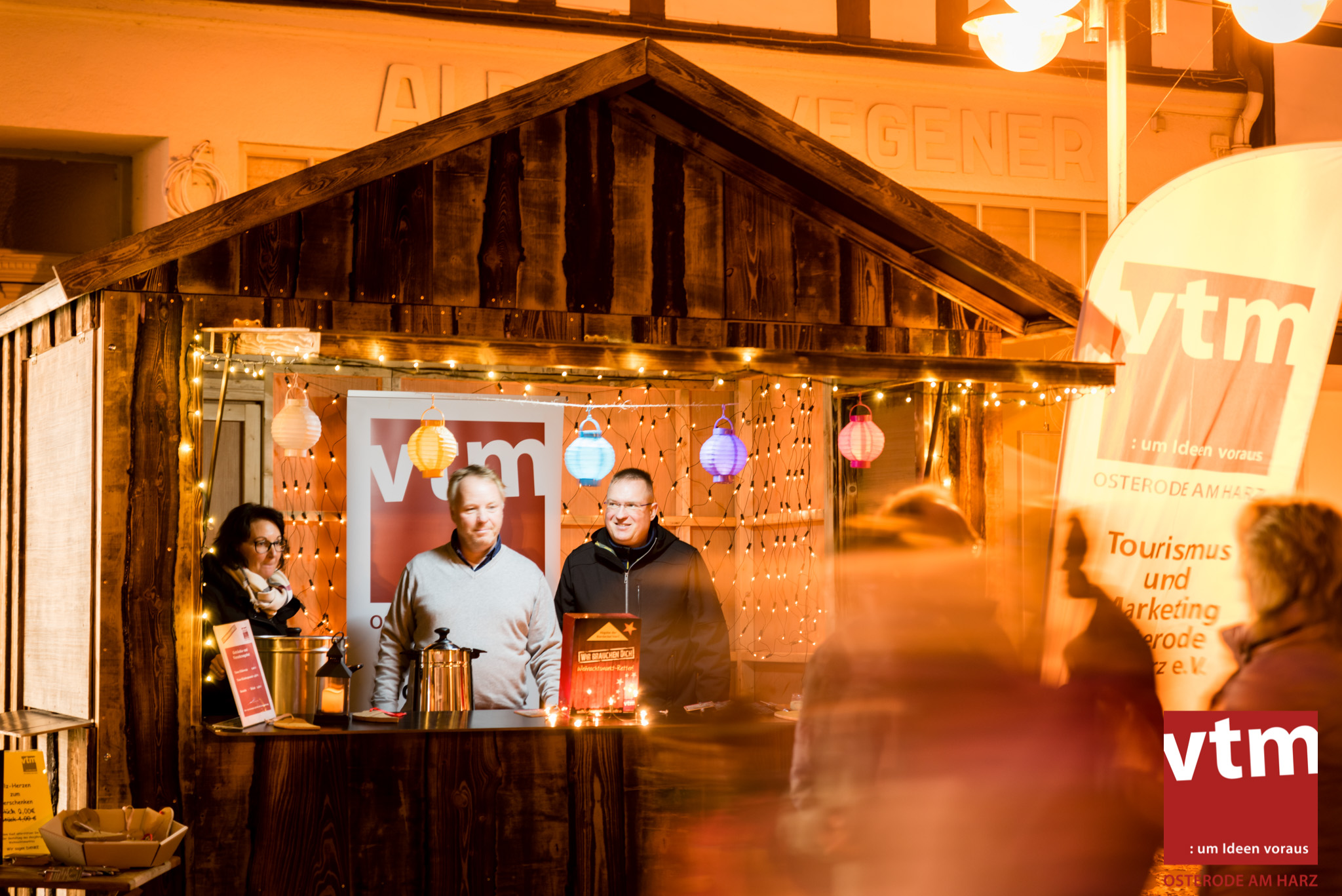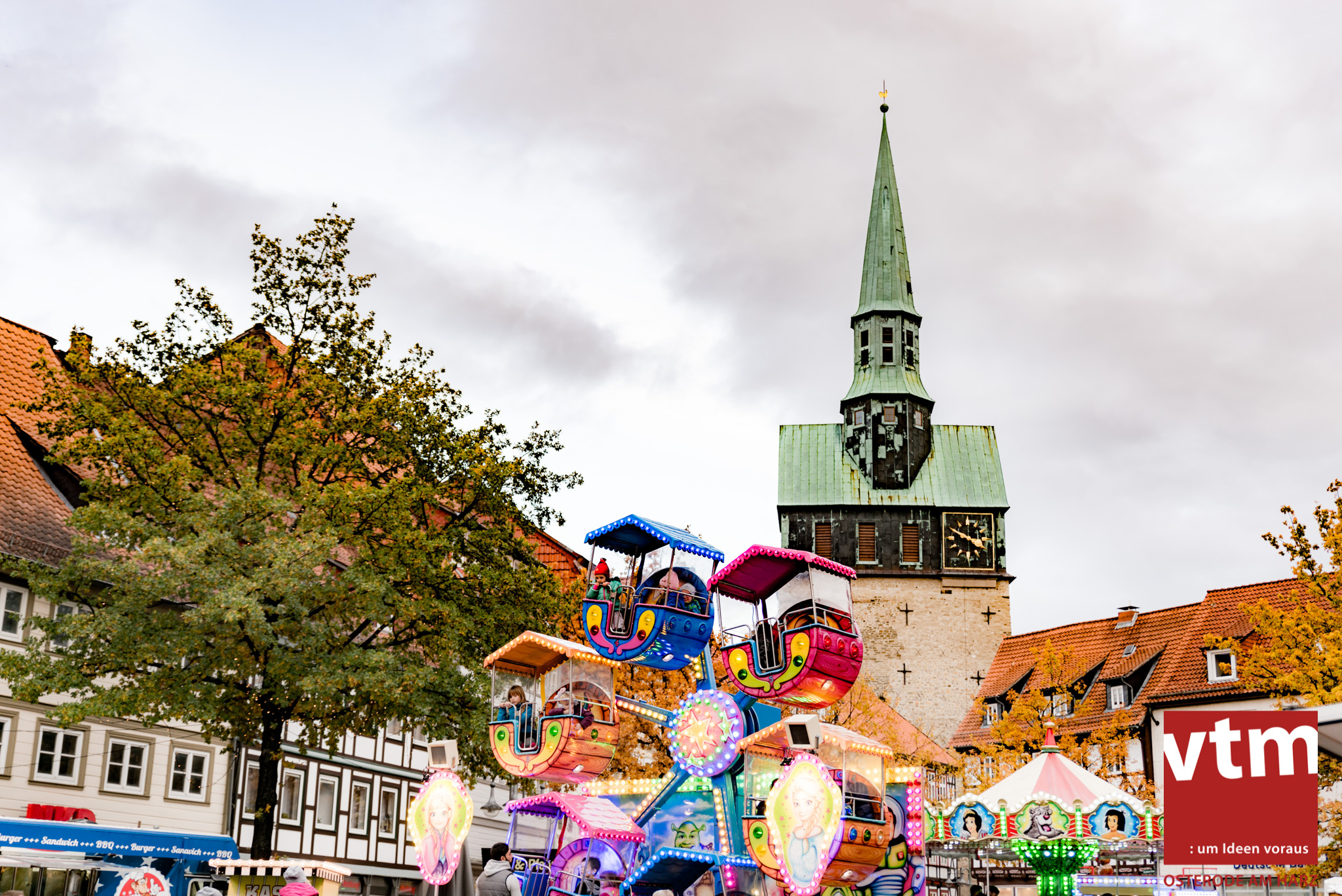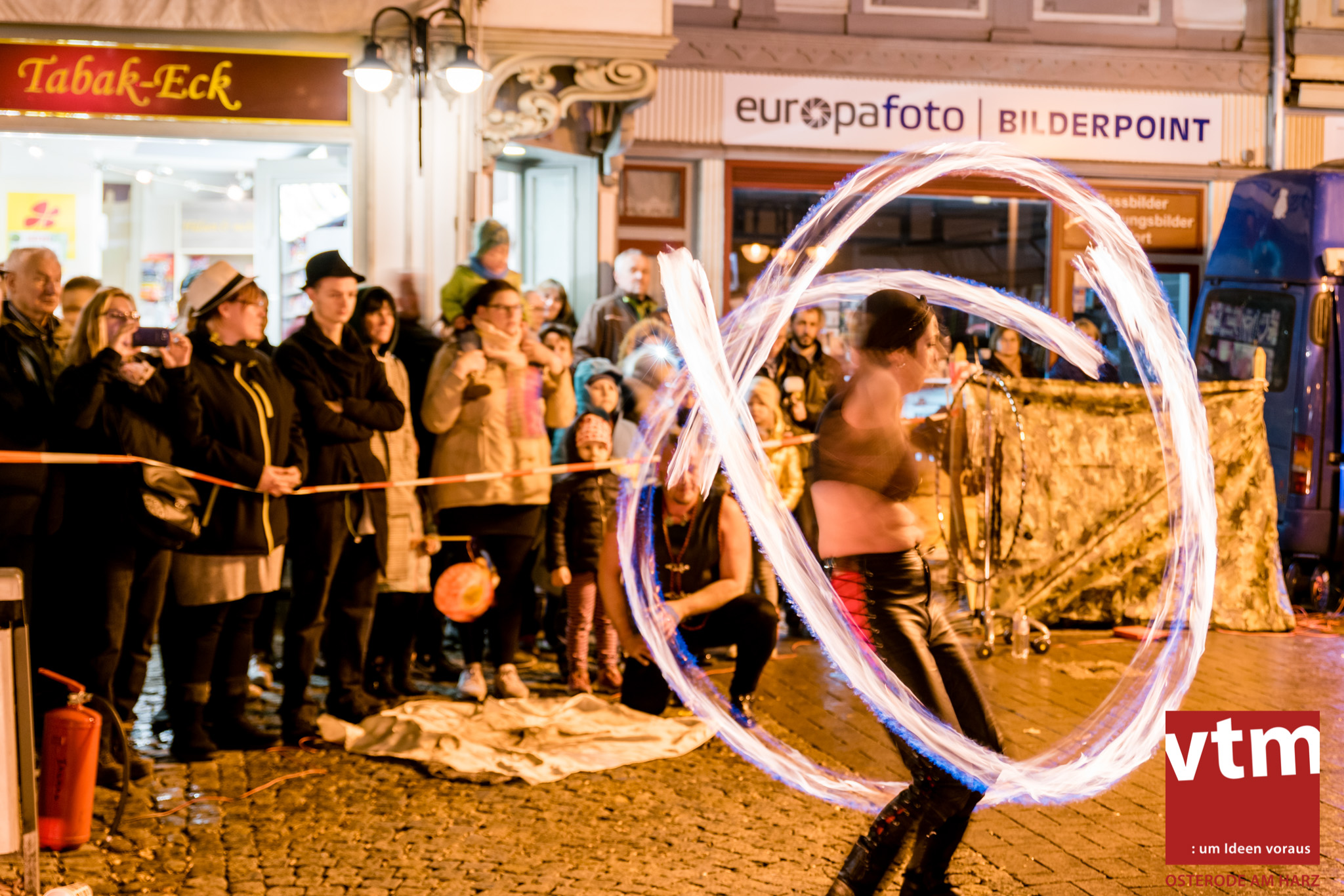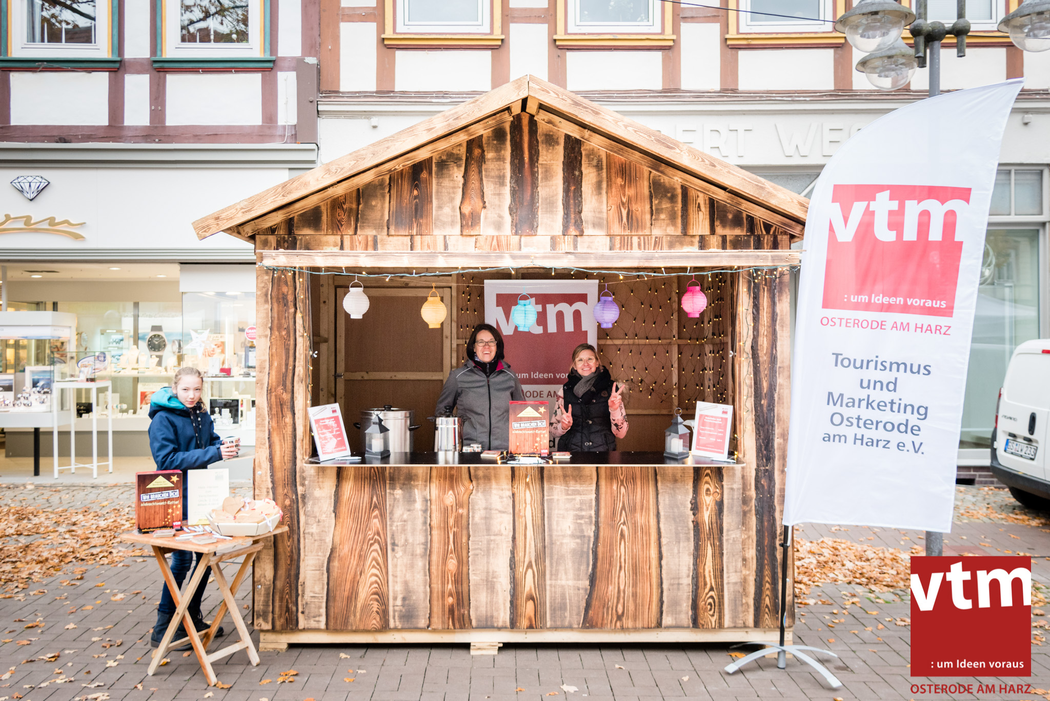 Voll, voller, am vollsten war die Osteroder Innenstadt am vergangenen Sonntag. Wir sind noch immer überwältigt davon, wie viele Besucher das Osteroder Lichterfest auf den Kornmarkt und drum herum gelockt hat. Jung und Alt bummelten im Schein der zahlreichen Lichter, stärkten sich mit den angebotenen Köstlichkeiten oder ließen sich von unserem Bürgermeister am vtm-Stand Glühwein einschenken. Strahlende Kinderaugen sah man im Kinderkarussell und Mini-Riesenrad sowie beim Kinderschminken von Optik Berneburg oder beim Laternebasteln im Spielzeugladen. Fast 100 Laternen sind am Sonntagnachmittag dort entstanden und fanden später ihren Einsatz beim Martinsumzug. Begleitet von Musiker Martin Hampe startete der Umzug um 16:30 Uhr auf dem Martin-Luther-Platz, auf dem man vor Kinderscharen und wunderschön leuchtenden Laternen kaum noch ein Bein auf den Boden bekam. Hoch zu Ross führte die Tochter des Bürgermeisters die bunte Laternen-Runde durch die Innenstadt bis zur Marientorstraße, wo die Kinder ein Heißgetränk sowie gesponserte Martinswecken vom Café Dornemann als Stärkung bekamen. Highlight des Tages und Abschluss einer gelungenen Veranstaltung bildete eine tolle Feuershow mit Musik auf dem Kornmarkt. Wir freuen uns über die durchweg positive Resonanz der Bürger, Osteroder Geschäftsleute und Budenbetreiber. Wir,als Veranstalter, waren ebenfalls mehr als zufrieden. Ein besonderer Dank gilt dem Café Dornemann, Optik Berneburg sowie Frau Kruse vom Spielzeugladen, Frau Lücke vom Findling und Frau Anke Pflaumbaum, Mutter von Maik Pflaumbaum/Telekomshop Marientorstraße, für die Unterstützung.